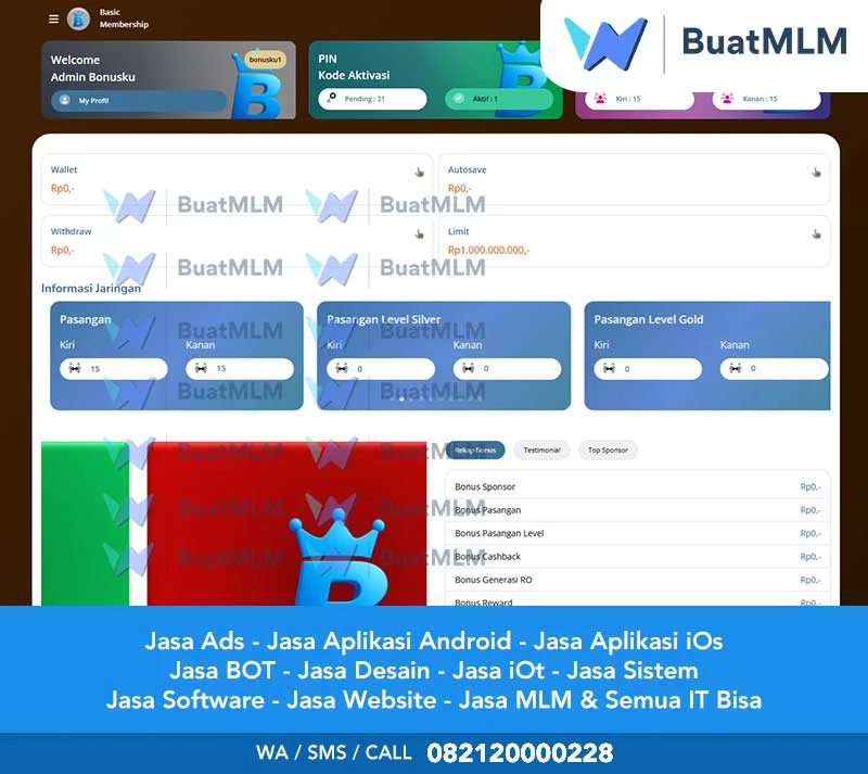 Berikut ini adalah penjelasan mengenai jenis-jenis bonus atau sistem pembonusan dalam dunia Multi Level Marketing (MLM) yang tersedia dalam layanan pembuatan website MLM dari Jasa Website MLM – Buat MLM – Jasa Buat Website MLM (buatmlm.com) Informasi ini dapat dijadikan sebagai referensi bagi Anda yang sedang merancang atau mengembangkan struktur pembonusan dalam bisnis MLM yang sedang Anda bangun
